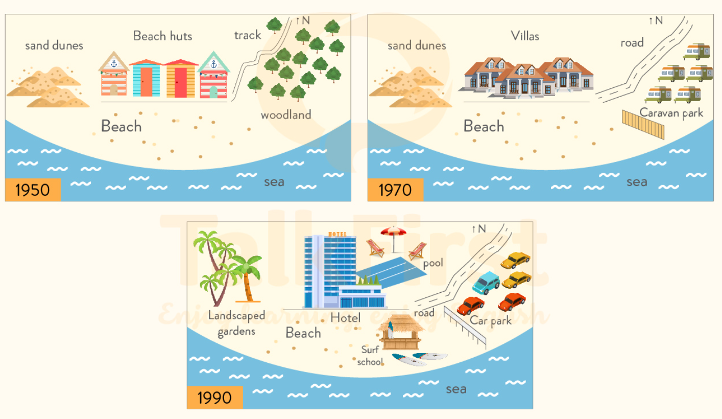 - Dạng 1 biểu đồ: Yêu cầu thí sinh miêu tả một bản đồ và sử dụng thì hiện tại đơn.